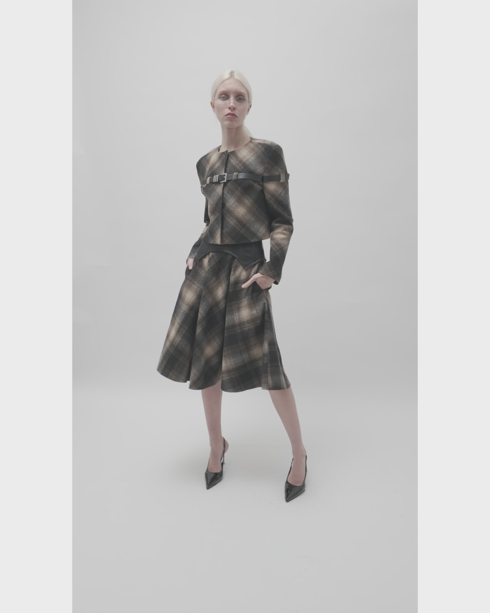 Arebella Plaid Skirt with Leather Waist Cincher